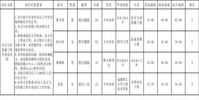 根據(jù)綿陽市水利規(guī)劃設(shè)計研究院有限公司發(fā)布的招聘公告及招聘相關(guān)規(guī)定,經(jīng)筆試、面試等程序,現(xiàn)將筆試、面試成績予以公示。