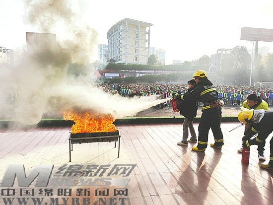 圖為部分師生參與撲救油盆火災(zāi)“實(shí)戰(zhàn)”。
