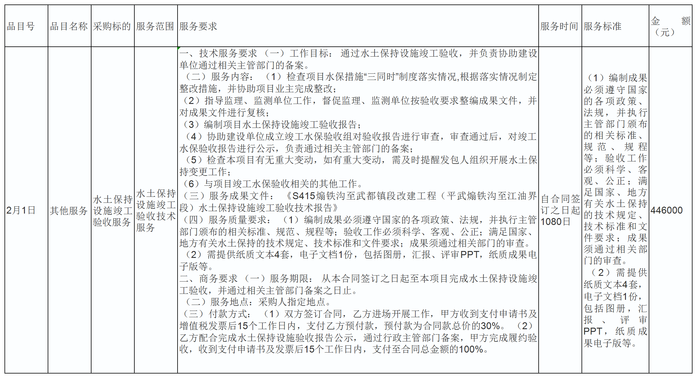 二、項(xiàng)目名稱:S415煽鐵溝至武都鎮(zhèn)段改建工程(平武煽鐵溝至江油界段)水土保持監(jiān)測及水土保持設(shè)施竣工驗(yàn)收技術(shù)服務(wù)、環(huán)境監(jiān)測和竣工環(huán)保驗(yàn)收服務(wù)