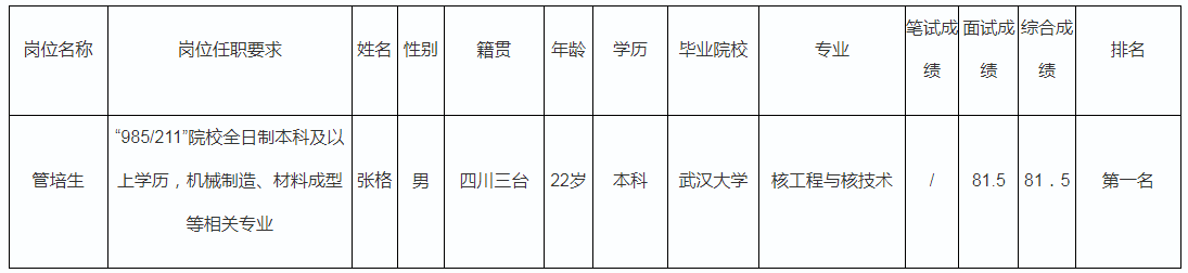 根據(jù)四川波鴻實(shí)業(yè)有限公司發(fā)布的招聘公告及招聘相關(guān)規(guī)定,現(xiàn)將四川綿陽(yáng)好圣汽車零部件制造有限公司管培生崗位面試成績(jī)予以公示。