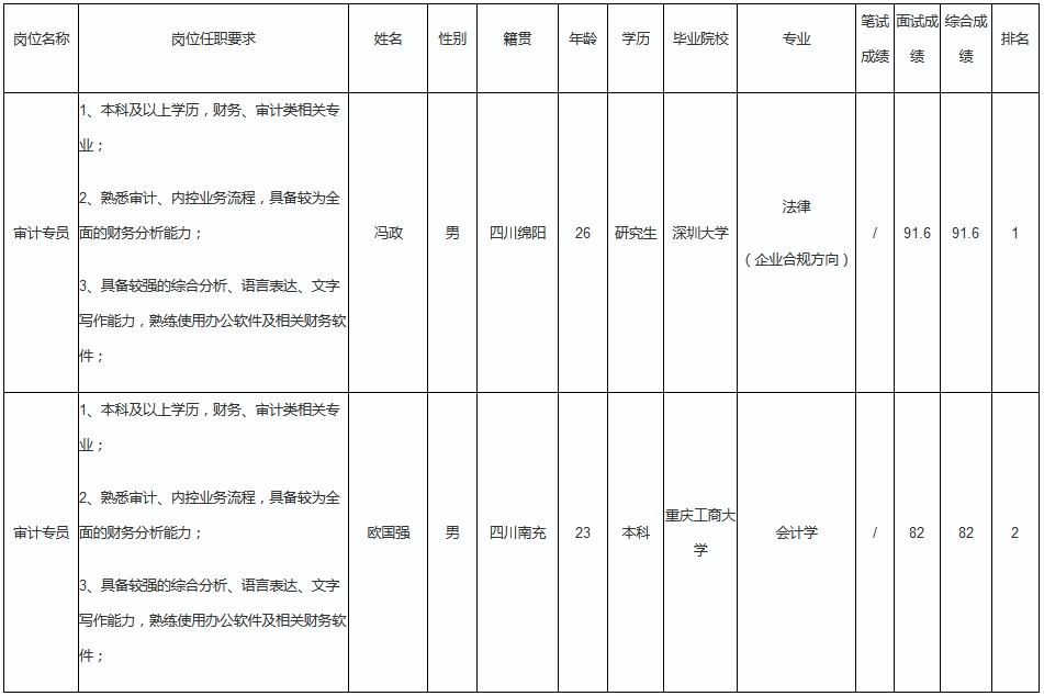 根據(jù)四川湖山電器股份有限公司發(fā)布的招聘公告及招聘相關(guān)規(guī)定,經(jīng)筆試、面試等程序,現(xiàn)將筆試(面試)成績予以公示。