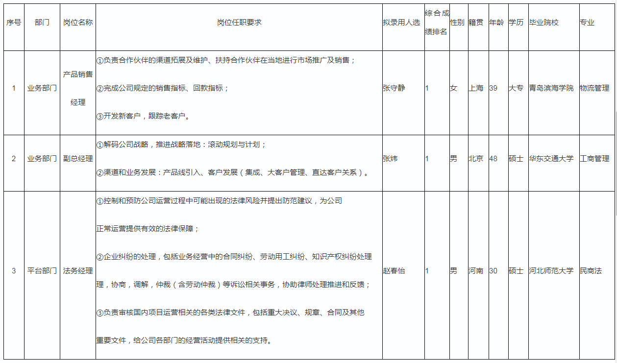 根據(jù)四川長虹佳華信息產(chǎn)品有限責(zé)任公司發(fā)布的招聘公告及招聘相關(guān)規(guī)定,經(jīng)筆試、面試、考察、體檢等程序,擬錄用張守靜、張煒、趙春怡同志到四川長虹佳華信息產(chǎn)品有限責(zé)任公司工作,現(xiàn)予以公示,具體情況如下: