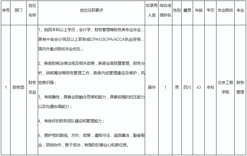 根據(jù)深圳市九洲智和科技有限公司發(fā)布的招聘公告及招聘相關(guān)規(guī)定,經(jīng)筆試、面試、考察、體檢等程序,擬錄用聶華同志到深圳市九洲智和科技有限公司工作,現(xiàn)予以公示,具體情況如下: