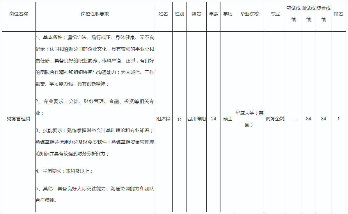 根據(jù)四川九洲投資控股集團有限公司發(fā)布的招聘公告及招聘相關(guān)規(guī)定,經(jīng)筆試、面試等程序,現(xiàn)將筆試(面試)成績予以公示。