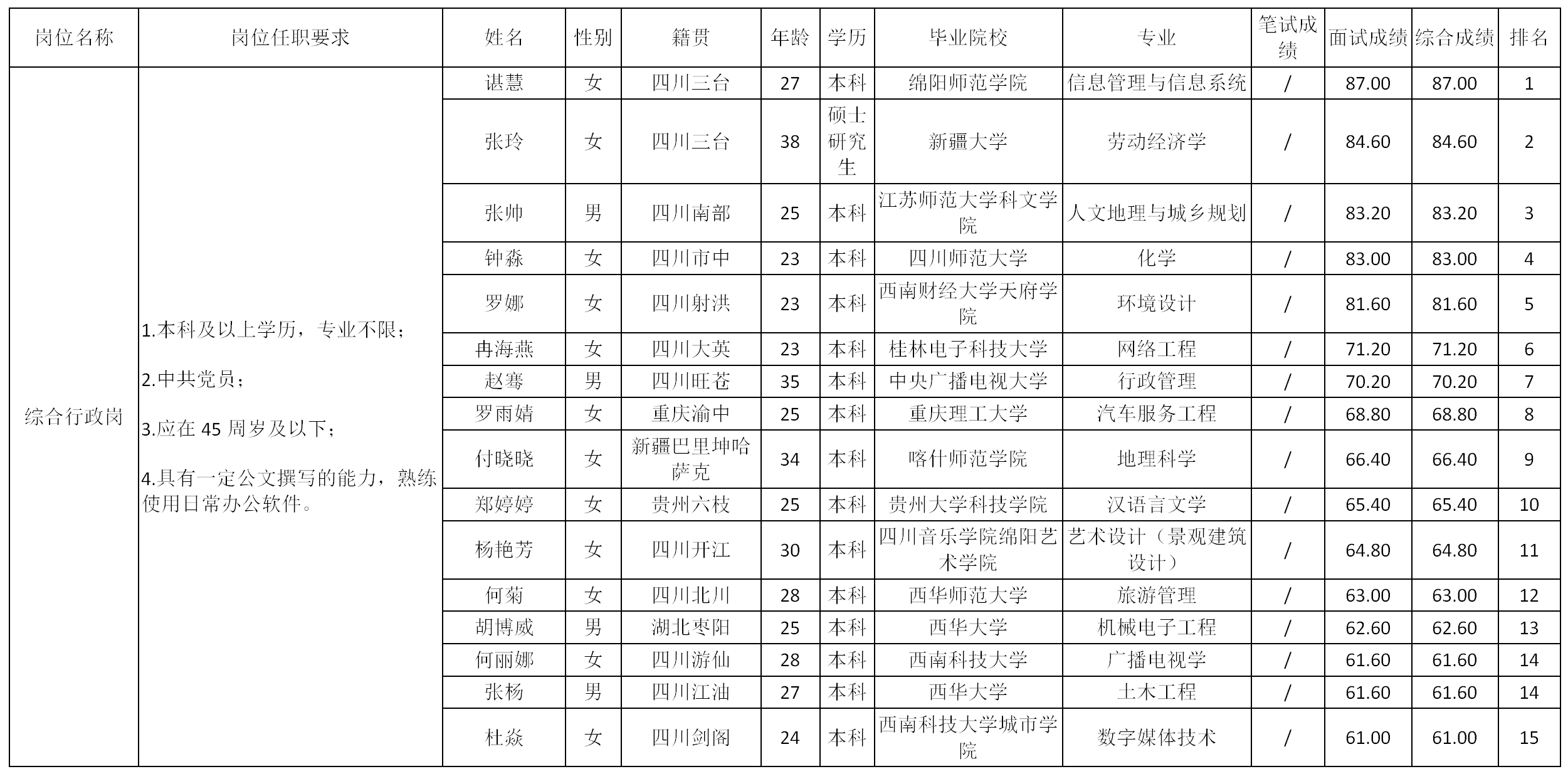 根據(jù)四川嘉來海川醫(yī)療科技有限公司發(fā)布的招聘公告及招聘相關(guān)規(guī)定,經(jīng)面試相關(guān)程序,現(xiàn)將面試成績予以公示。