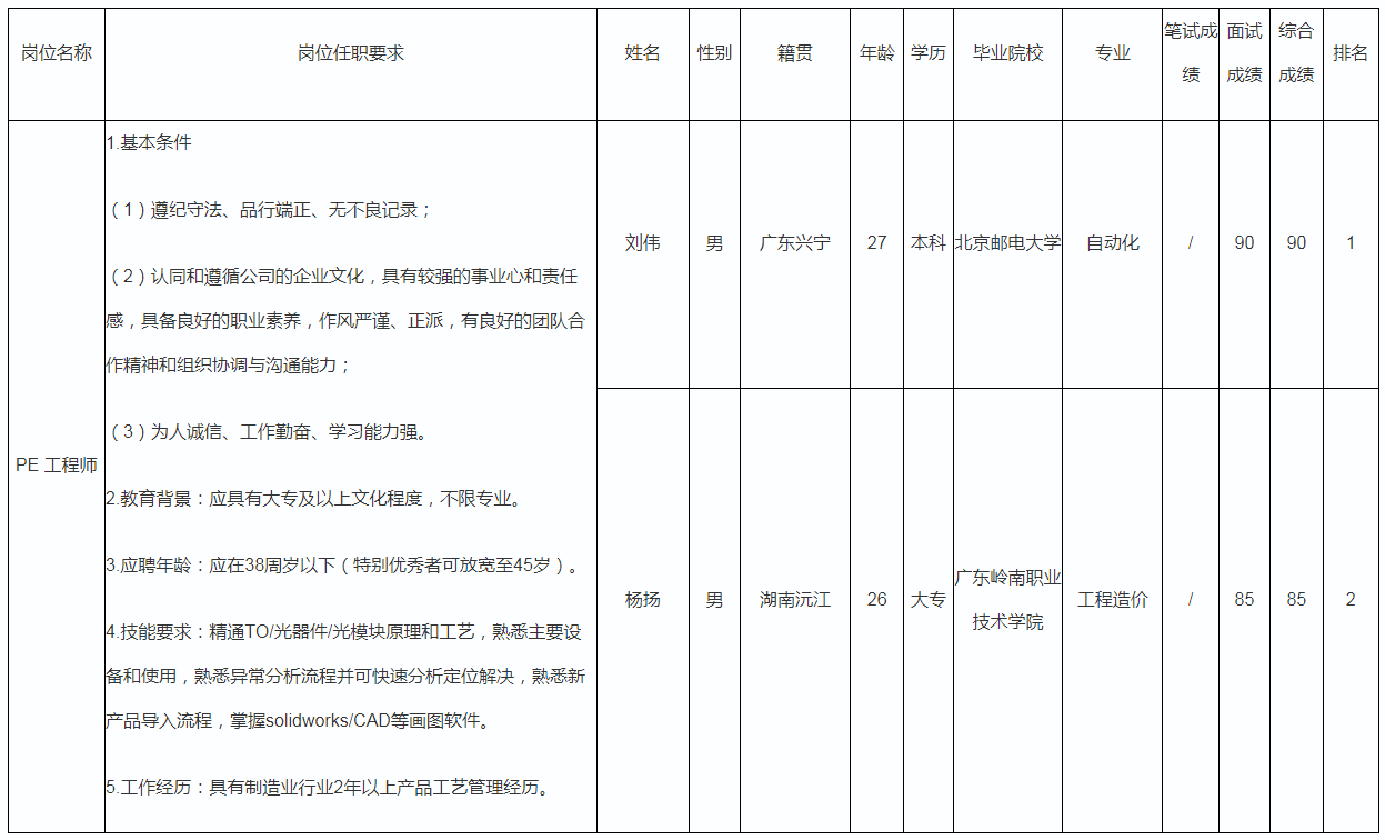 根據(jù)深圳九州光電子技術有限公司發(fā)布的招聘公告及招聘相關規(guī)定,經(jīng)面試程序,現(xiàn)將面試成績予以公示。