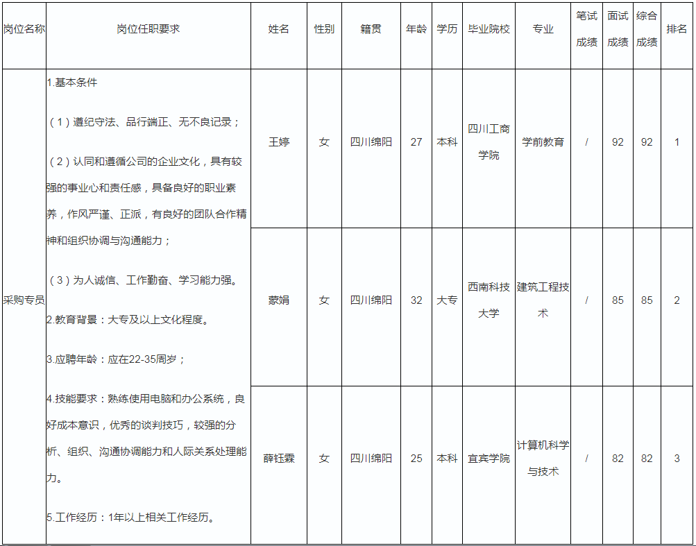 根據(jù)四川九州光電子技術(shù)有限公司發(fā)布的招聘公告及招聘相關(guān)規(guī)定,經(jīng)面試程序,現(xiàn)將面試成績(jī)予以公示。