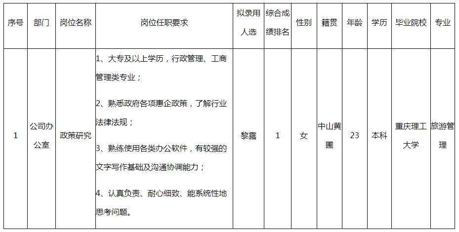 根據(jù)廣東長虹電子有限公司發(fā)布的招聘公告及招聘相關(guān)規(guī)定,經(jīng)面試、考察、體檢等程序,擬錄用黎露同志到公司辦公室工作,現(xiàn)予以公示,具體情況如下: