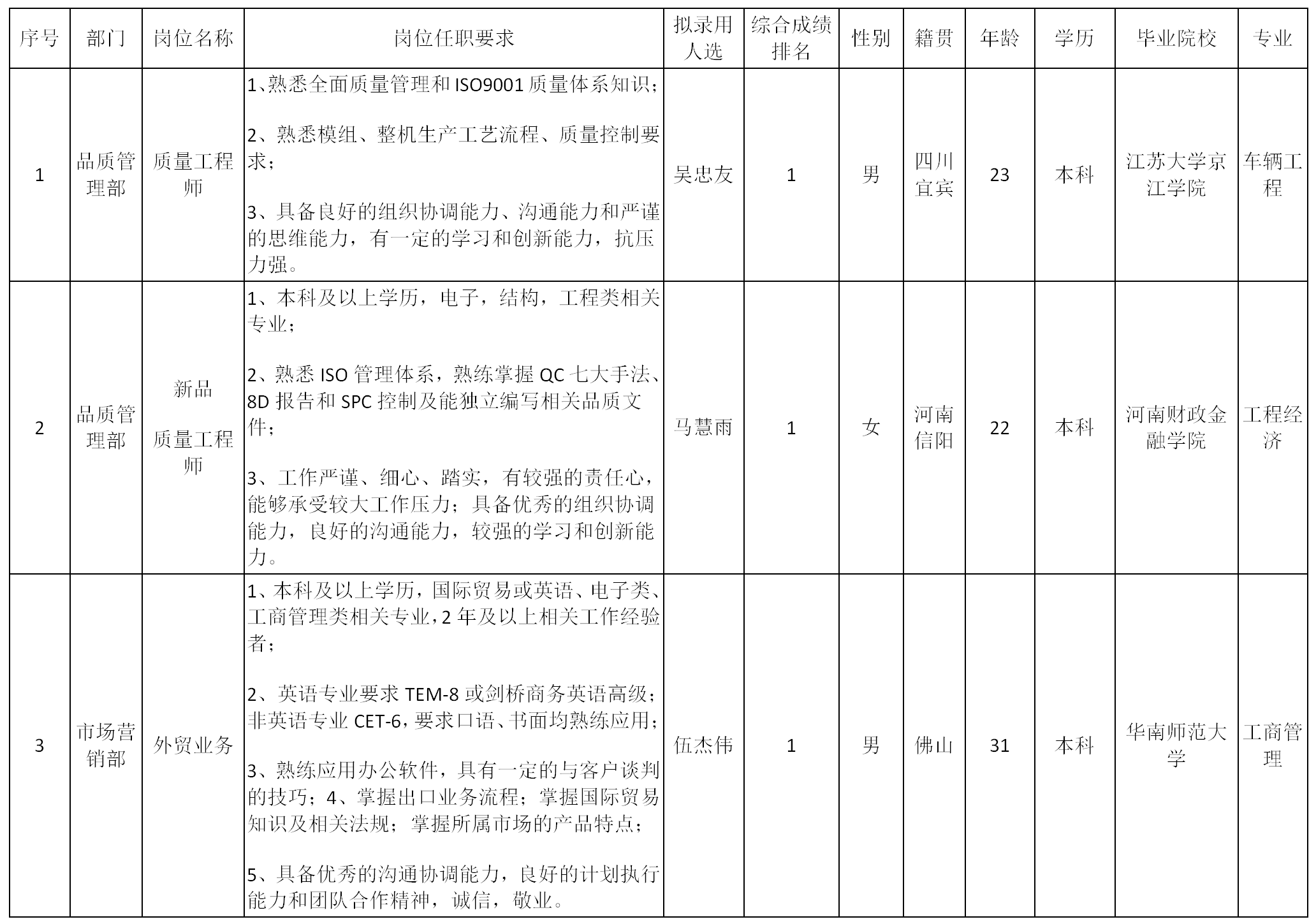 根據(jù)廣東長虹電子有限公司發(fā)布的招聘公告及招聘相關(guān)規(guī)定,經(jīng)面試、考察、體檢等程序,擬錄用黎露同志到公司辦公室工作,現(xiàn)予以公示,具體情況如下: