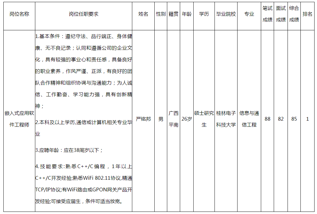 根據(jù)深圳市九洲電器有限公司發(fā)布的招聘公告及招聘相關(guān)規(guī)定,經(jīng)筆試、面試等程序,現(xiàn)將筆試(面試)成績予以公示。