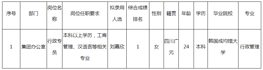 根據(jù)零八一電子集團有限公司發(fā)布的招聘公告及招聘相關(guān)規(guī)定,經(jīng)筆試、面試、考察、體檢等程序,擬錄用劉嘉欣同志到集團辦公室工作,現(xiàn)予以公示,具體情況如下: