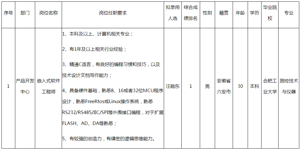根據(jù)中科美菱低溫科技股份有限公司(以下簡稱“中科美菱”)發(fā)布的招聘公告及招聘相關(guān)規(guī)定,經(jīng)面試、考察、體檢等程序,擬錄用汪曉東同志到中科美菱工作,現(xiàn)予以公示,具體情況如下: