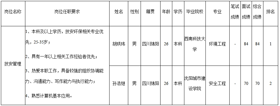 根據(jù)四川九州電子科技股份有限公司發(fā)布的招聘公告及招聘相關(guān)規(guī)定,經(jīng)筆試、面試等程序,現(xiàn)將筆試(面試)成績予以公示。