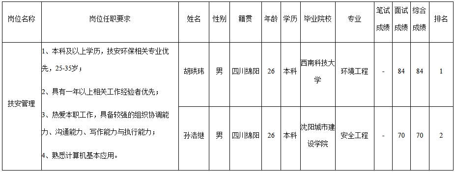 根據(jù)四川九州電子科技股份有限公司發(fā)布的招聘公告及招聘相關(guān)規(guī)定,經(jīng)筆試、面試等程序,現(xiàn)將筆試(面試)成績(jī)予以公示。