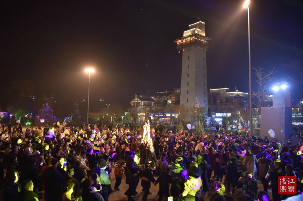 夜晚的寒意很濃,巴拿恰街區(qū)人流不斷。禹王廣場正在舉行羌族歌舞表演。只要不是雨天,巴拿恰禹王廣場每晚都會舉行羌族歌舞演出,晚上還有篝火晚會。
