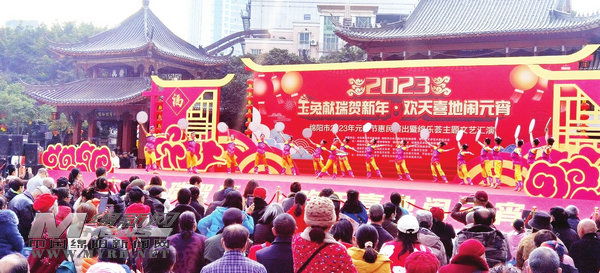 歌舞鬧春,元宵情濃。2月4日,正月十四,綿陽市2023年元宵節(jié)惠民演出暨綿樂薈主題文藝匯演在鐵牛廣場舉行。群眾文藝演出、非遺展示、圖書閱讀服務等活動,讓市民“一站式”享受到節(jié)日的歡樂和公共文化的福利。