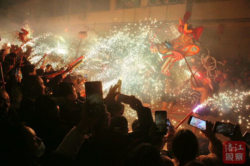 據(jù)非物質(zhì)文化遺產(chǎn)傳承人蔣斌介紹,舞火龍時,舞龍人要脫去龍衣,觀賞者可以手持煙花噴向龍身與舞龍者。正是因為火龍、舞者、觀眾三位一體的極度密集的交織與碰撞,燒火龍的氣氛才會如此熱烈奔放。