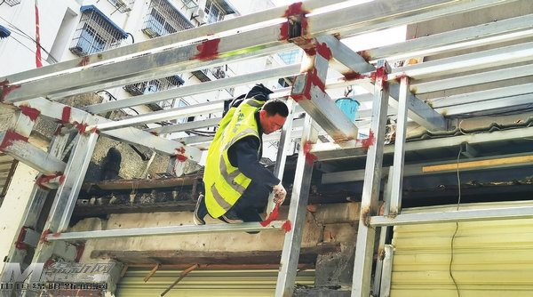 據(jù)現(xiàn)場施工負責人介紹,馬家巷的整體提升打造正按施工要求穩(wěn)步推進,目前正加緊對用于裝飾的鋼架進行安裝焊接、卷簾門的統(tǒng)一更換。下一步重點進行全面造型和裝飾裝修,力爭在5月初完工投用,讓食客們早日回到馬家巷品嘗美食。(綿報融媒記者任明勇文/圖)