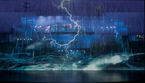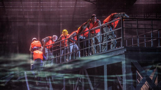 作為一部工業(yè)題材話劇,《龍騰伶仃洋》選取了人工島上的臺風(fēng)搶險、工程船上的困苦煎熬、籌建團(tuán)隊“十三太保”的堅守、沉管安裝的一波三折、大橋海底隧道的接合等港珠澳大橋建設(shè)中的典型事件和情節(jié)。