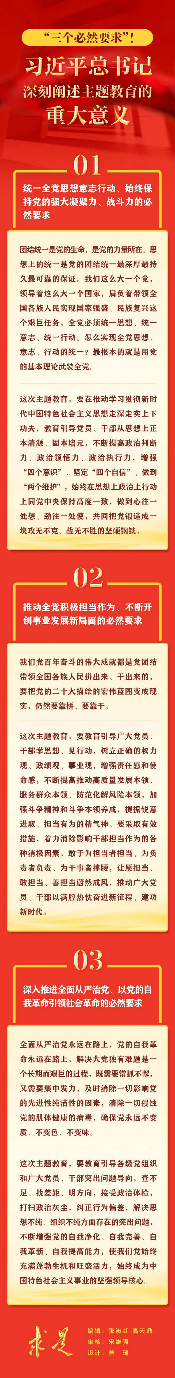 5月1日出版的第9期《求是》雜志刊發(fā)習(xí)近平總書(shū)記重要文章《在學(xué)習(xí)貫徹習(xí)近平新時(shí)代中國(guó)特色社會(huì)主義思想主題教育工作會(huì)議上的講話》。在這篇重要文章中,習(xí)近平總書(shū)記用“三個(gè)必然要求”深刻闡述開(kāi)展這次主題教育的重大意義。
