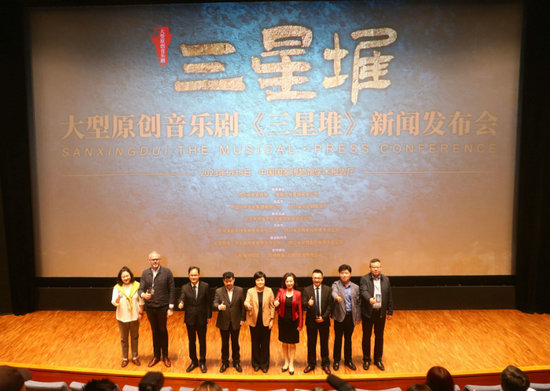 由四川省委宣傳部、紫荊文化集團(tuán)有限公司指導(dǎo),中國(guó)對(duì)外文化集團(tuán)有限公司、四川省文化和旅游廳出品,北京天橋盛世投資集團(tuán)有限責(zé)任公司聯(lián)合出品,中演演出院線發(fā)展有限責(zé)任公司、四川省歌舞劇院有限責(zé)任公司聯(lián)合主辦,北京四海一家文化傳播有限責(zé)任公司、四川省歌舞劇院有限責(zé)任公司聯(lián)合制作、三星堆博物館支持的大型原創(chuàng)音樂劇《三星堆》新聞發(fā)布會(huì)8日在中國(guó)國(guó)家博物館舉行。