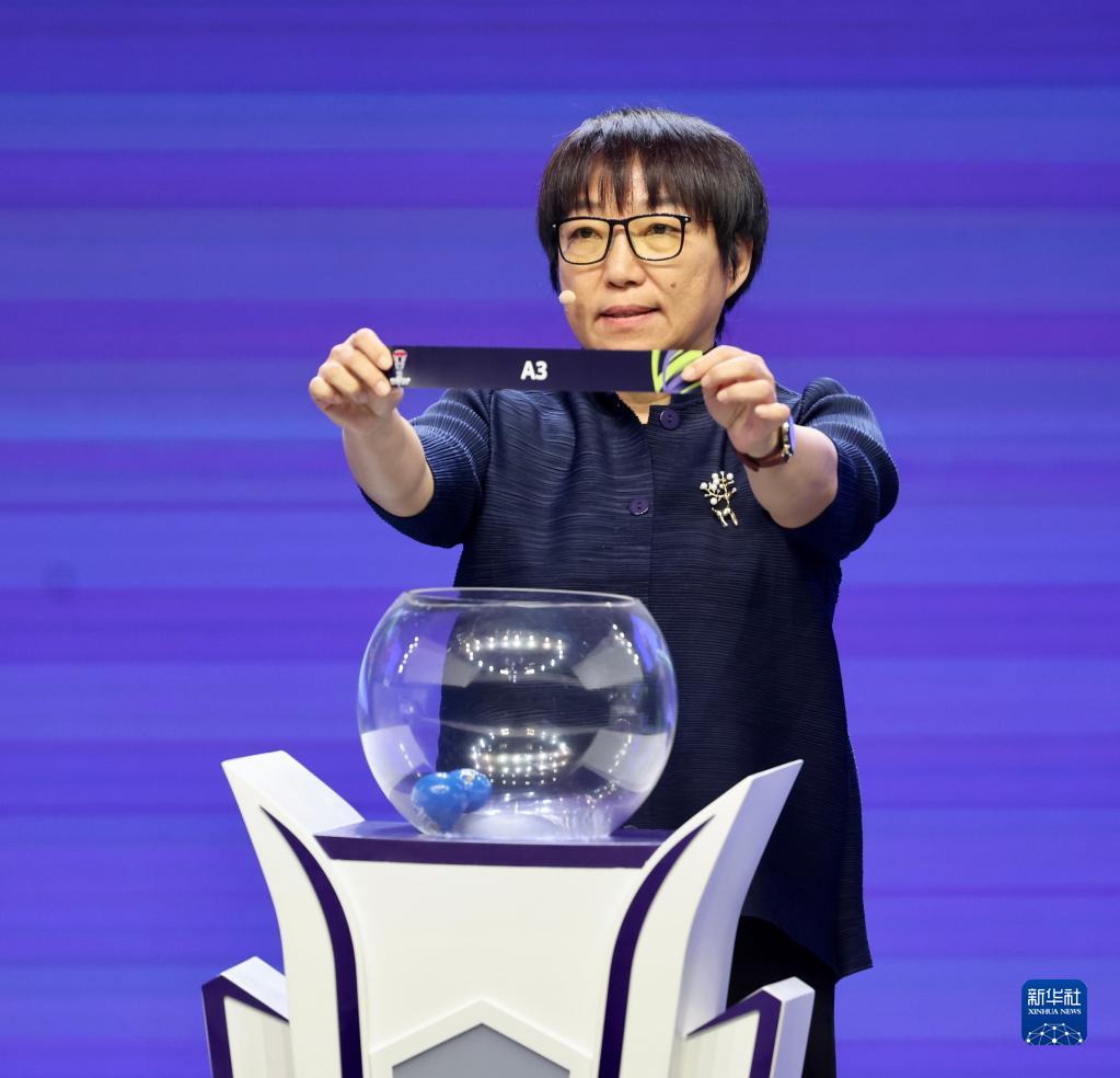 5月11日,中國足協(xié)副主席孫雯作為抽簽嘉賓在抽簽儀式上。新華社發(fā)(亞足聯供圖)