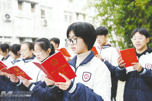 綿陽(yáng)南山中學(xué)學(xué)生在國(guó)旗下開展憲法晨讀活動(dòng)