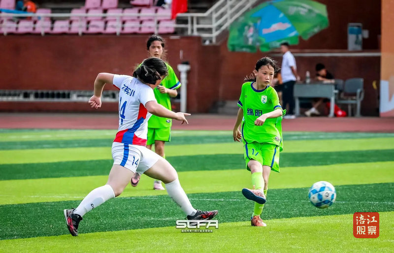 決賽中,江油市花園小學(xué)女足遭遇了成都隊的強勁抵抗,在70分鐘的比賽中雙方1:1戰(zhàn)平。