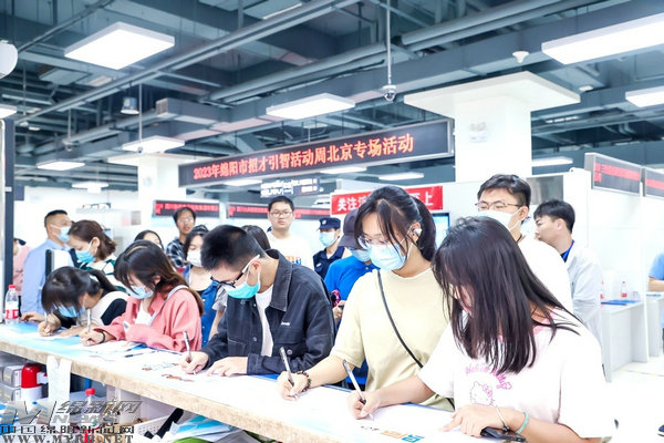 隨后,三臺縣委組織部、北川縣委組織部負(fù)責(zé)同志分別作引才推介;西南科技大學(xué)人事處負(fù)責(zé)人作為用人單位代表作崗位推介。本次活動,綿陽市科研院所、高等院校、重點企業(yè)41家單位攜780余個崗位,誠邀在京人才來綿干事創(chuàng)業(yè)?,F(xiàn)場招聘區(qū),求職學(xué)子絡(luò)繹不絕。大家紛紛與自己心儀崗位的單位負(fù)責(zé)人進(jìn)行詳細(xì)溝通,投遞簡歷(如圖)。
