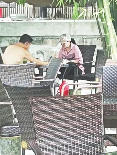 記者看見,在西山公園一處茶桌上,一男子脫掉上衣,光著膀子,旁若無人地喝茶,根本不管周圍其他游客的感受,把綿陽市民的文明公約拋諸腦后。在玉女湖畔,也有一位“膀爺”,缺乏應(yīng)有的文明素養(yǎng),對(duì)于周圍走來走去照相的女游客視而不見。在另一處茶桌上,一位父親帶著兩個(gè)孩子午餐,孩子不將紙巾丟進(jìn)垃圾桶,而是隨意亂扔,家長(zhǎng)也未制止、糾正。
