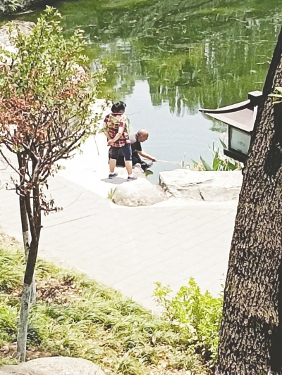 在景區(qū)其他地方,個(gè)別隨手丟垃圾的也是偶爾可見。在玉女湖的一處岸邊,一對(duì)老年夫妻開開心心玩“舀魚”游戲,其礦泉水瓶子里裝了好幾條小魚了,清澈的湖水中,一群群小魚悠然地游著,不曾想?yún)s成了這對(duì)夫妻的“獵物”。有人問他舀魚干啥,他竟回答:“玩唄。”公園是綿陽市民共同的花園,希望大家在享受美景的同時(shí),也要自覺維護(hù)公園的秩序和衛(wèi)生,讓文明出游也成這美景中一道亮麗的風(fēng)景。(綿報(bào)融媒記者 陳榮 文/圖)