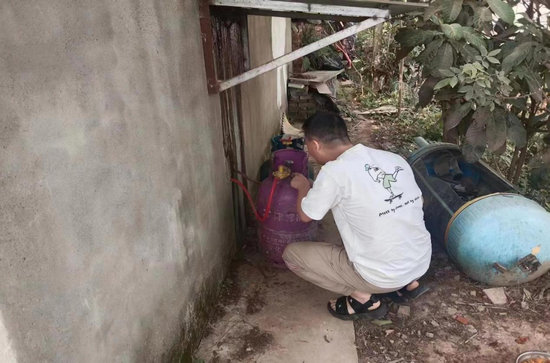 檢查人員在對信義鎮(zhèn)武引二水廠項(xiàng)目管理人員食堂檢查過程中發(fā)現(xiàn)該氣瓶為報(bào)廢氣瓶;軟管材質(zhì)不符合要求;未安裝液化石油氣報(bào)警器。