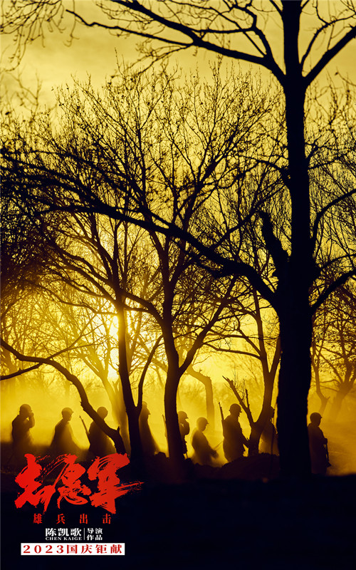 劇照則選取電影中不同戰(zhàn)役下志愿軍戰(zhàn)士不同的行軍姿態(tài),戰(zhàn)士們懷抱保家衛(wèi)國的信仰奔赴戰(zhàn)場,親手創(chuàng)造屬于新中國的和平未來。