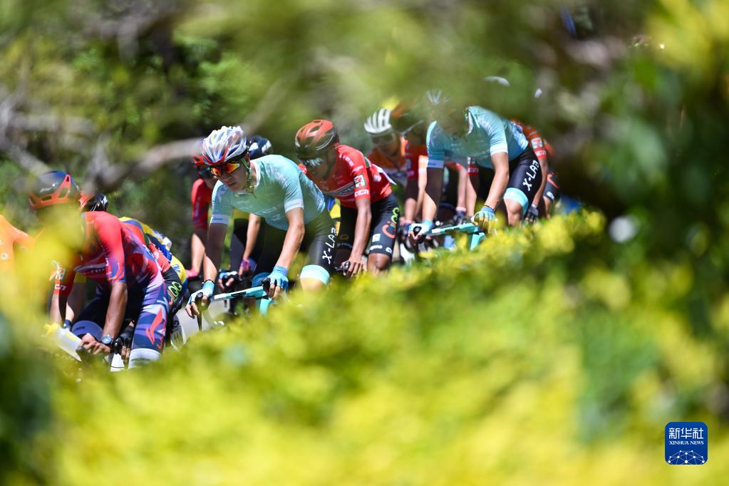 7月9日,參賽選手在比賽中騎行。新華社記者 張龍 攝