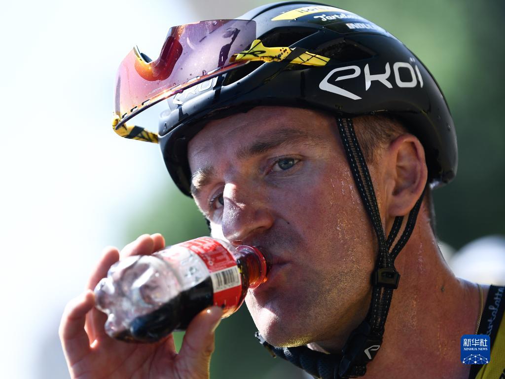 7月9日,比利時(shí)塔特雷托-艾索雷斯車隊(duì)選手蒂莫蒂·杜邦在賽后補(bǔ)給。新華社記者 張龍 攝