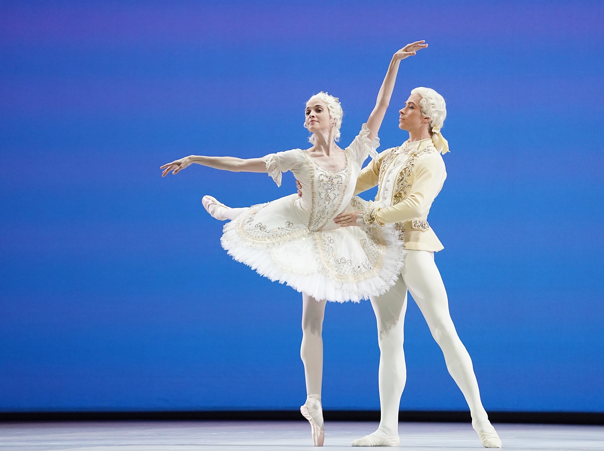 大幕拉開,“夫妻檔”首席組合阿納斯塔西婭·斯塔什克維奇、維亞切斯拉夫·洛帕京帶來的舞劇《魔符》雙人舞片段贏得“開門紅”,擺脫地心引力般的高難度托舉、信手拈來的快速揮鞭轉(zhuǎn)、撲面而來的歷史氣息和俄羅斯風(fēng)格迅速抓住觀眾,奠定了整晚的氛圍基調(diào)。接下來,《羅密歐與朱麗葉》慢板片段、《睡美人》雙人舞片段、《斯巴達(dá)克斯》雙人舞片段、《天鵝湖》第二幕雙人舞片段以及《春潮》《古典大雙人舞》《天鵝之死》等名作輪番上演,埃莉奧諾拉·塞弗納德、阿特米·別利亞科夫、安娜·尼庫利納、阿爾捷姆·奧夫恰連科、米哈伊爾·洛布金等一眾明星首席接連登場,每段作品短暫結(jié)束時,觀眾的掌聲似乎都要將體量龐大的歌劇院掀翻?!短?middot;吉訶德》極致明艷炫技的大舞段最終為整個星光璀璨的芭蕾之夜收官,舞者們數(shù)次謝幕,但美好純粹的藝術(shù)留下的震撼久久不散。