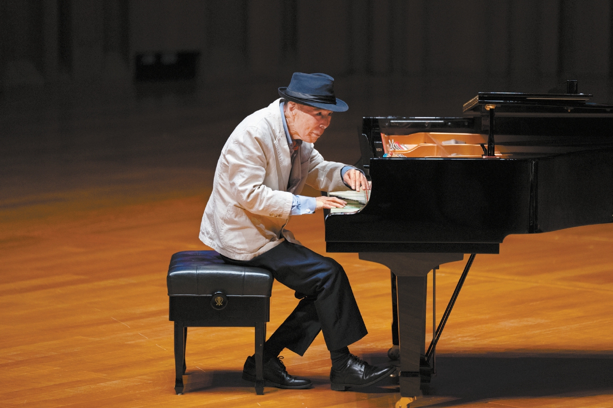 89歲高齡的日本爵士泰斗菅野邦彥走上舞臺,小黑帽,白西裝,腳步不快,脊背輕微有些佝僂,但手里的“小玩具”透露出老爺子的俏皮心思。扶著鋼琴,菅野邦彥向觀眾深深鞠了標(biāo)志性的一躬,隨后開啟了他輕巧的演奏。