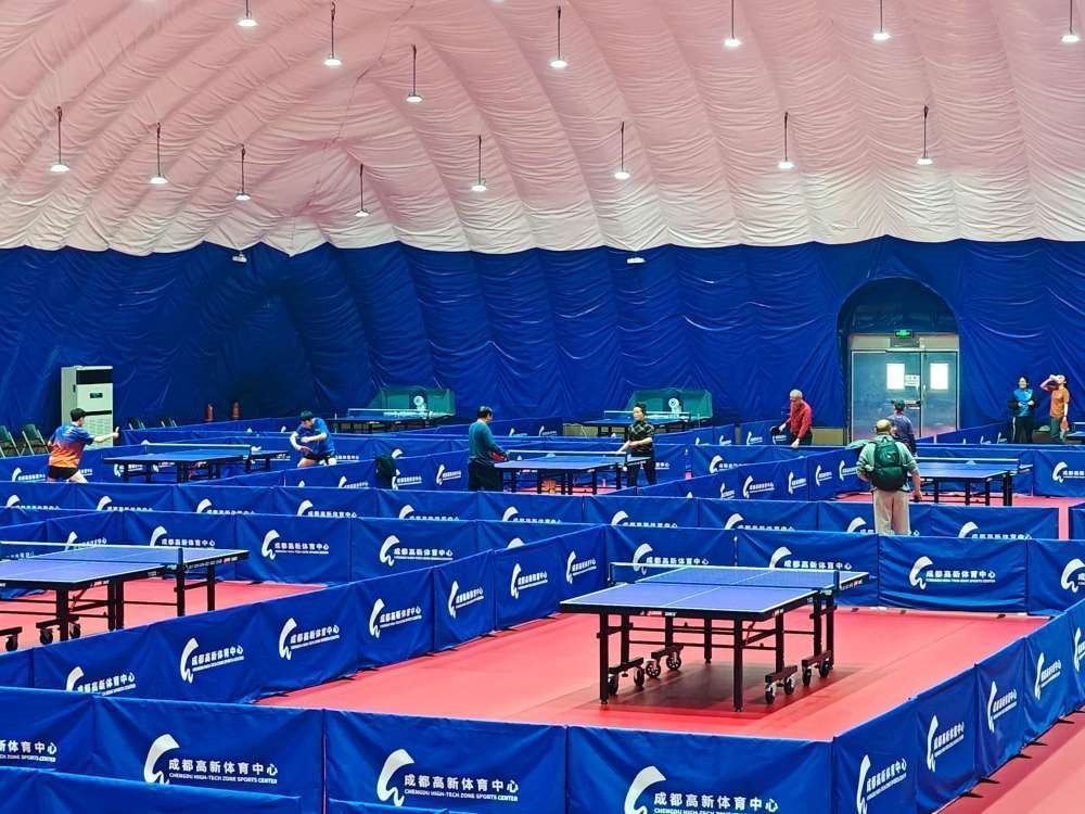 3月1日,人們在成都高新體育中心多功能館的臨時訓練氣膜館練習打乒乓球。該臨時訓練氣膜館采用輕型裝配式氣膜結(jié)構(gòu),利用氣壓來支撐,無需任何梁、柱,可得到更大的完全凈空的建筑空間,具有節(jié)約能源、減少水資源消耗、降低二氧化碳排放量、延長使用壽命、降低建筑物運行成本、促進可持續(xù)發(fā)展等優(yōu)點。新華社發(fā)(陳坤 攝)
