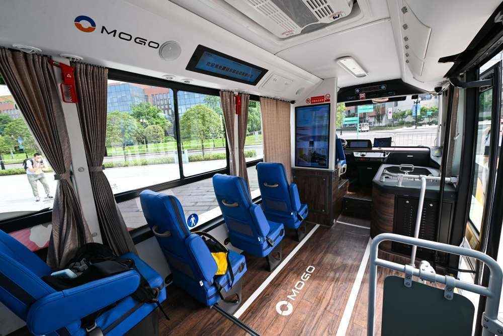 這是7月15日拍攝的大運村自動駕駛巴士內(nèi)部。新華社記者 王曦 攝
