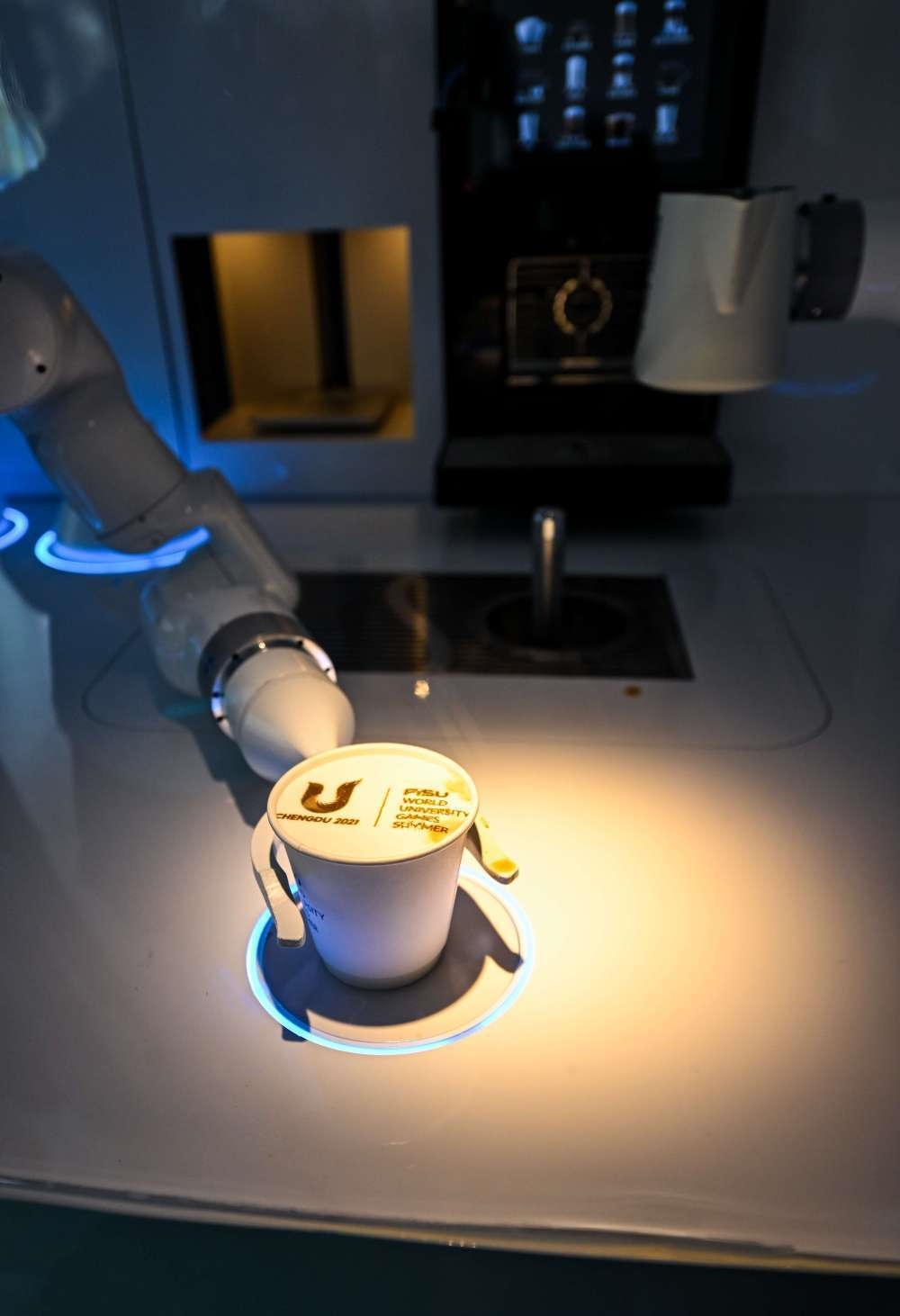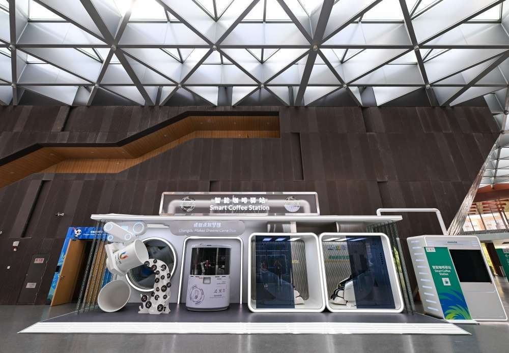 這是7月15日拍攝的大運村內(nèi)的智能咖啡驛站。新華社記者 王曦 攝