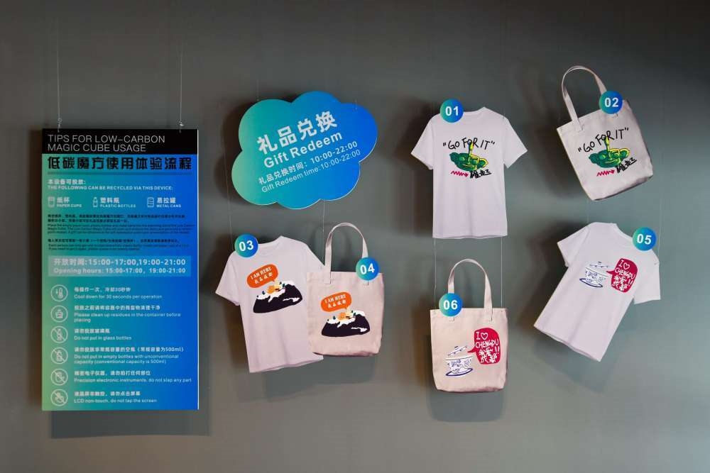 這是7月16日拍攝的“低碳魔方”使用體驗流程信息牌及可參與兌換的禮品。新華社記者 胥冰潔 攝