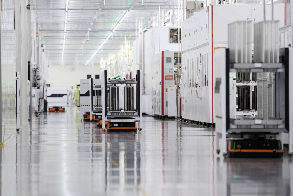 6月21日,在通威太陽能成都雙流生產(chǎn)基地太陽能電池片智能智造車間,機器人在穿梭轉(zhuǎn)運。新華社記者 江宏景 攝