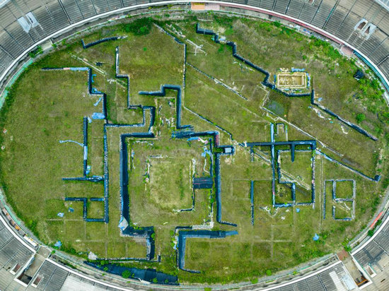 7月20日拍攝的位于成都體育中心內的東華門遺址公園遺址區(qū)(無人機照片)。新華社記者 沈伯韓 攝