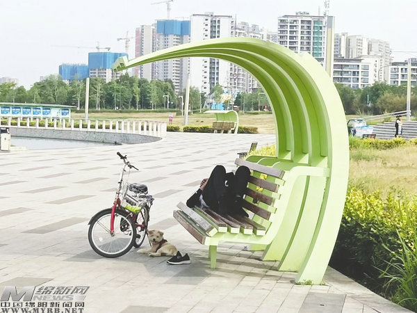 記者在濕地公園看到,游船中心一個座椅上,一男子脫掉鞋子,直接躺在椅子上睡覺(如圖),不僅不雅觀,還讓其他想休息的游客無處落座。無獨有偶,在附近一路邊,兩位女士把這里當成自家的“客廳”,鋪上墊子,躺在上面休息,從旁邊經(jīng)過的游客只好側(cè)目而過。
