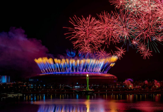 這是7月28日拍攝的開幕式焰火。新華社記者 胡超 攝
