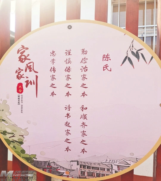 家風(fēng)亭內(nèi),村上劉氏、李氏、陳氏、卿氏幾個(gè)大姓的家風(fēng)家訓(xùn)做成了牌匾上墻。村民陳興全家的“陳氏家訓(xùn)”內(nèi)容為:“勤儉治家之本、和順齊家之本、謹(jǐn)慎保家之本、詩(shī)書起家之本、忠孝傳家之本。”“這個(gè)家訓(xùn)是我們老一輩傳下來的訓(xùn)示,家族祖祖輩輩都按照家風(fēng)家訓(xùn)這些條款做人、做事,教育子女也是按照這個(gè)來執(zhí)行。”退休黨員干部陳興全告訴記者。