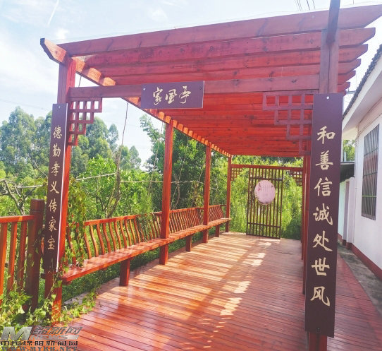 跟隨九合村黨委書記卿官松的步伐,記者來到村頭一個(gè)古色古香的家風(fēng)亭。“和善信誠(chéng)處世風(fēng)、德勤孝義傳家寶”兩行對(duì)聯(lián)躍然于亭外,濃厚的文化氛圍撲面而來。村民在輕松悠閑散步中閱覽一段段家風(fēng)家訓(xùn),亭廊以潤(rùn)物細(xì)無聲的形式培育良好家風(fēng),也為鄉(xiāng)風(fēng)文明建設(shè)增添了一個(gè)新的展示窗口。“文明村不僅美在村容村貌這個(gè)‘面子’上,也美在好家風(fēng)、好家訓(xùn)這個(gè)‘里子’上。”卿官松說。