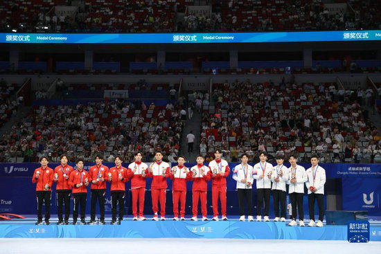 當(dāng)日,在成都舉行的第31屆世界大學(xué)生夏季運(yùn)動(dòng)會(huì)體操項(xiàng)目男子團(tuán)體決賽中,中國(guó)隊(duì)以262.594分的總成績(jī)獲得冠軍。