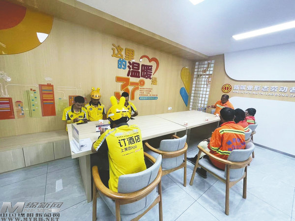 外賣員和環(huán)衛(wèi)工在“37℃暖心驛站”休息