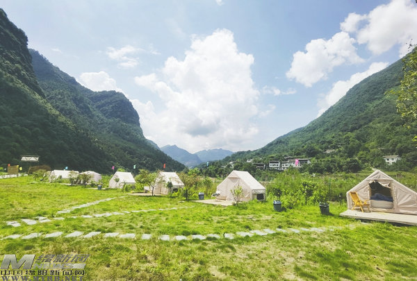 陳家壩的馬家倒溝有著純原生態(tài)的自然景觀,為增加游客旅游體驗,當?shù)匦陆艘皝硪叭敉饴稜I基地和民宿,滿足游客對戶外運動的需求。露營基地建起了游泳池、天幕以及燒烤用具,足夠上百人使用,在這里可以進行大型燒烤,舉行音樂派對等活動,每天都有不少自駕游、越野愛好者以及驢友來在這里停留,盡情享受看天上的星星、聽潺潺流水的原生態(tài)自然體驗。